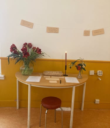 The design of rituals remains an ongoing field of research for me. Currently I am exploring how rituals are already (un)consciously embedded in the process of ongoing grief.